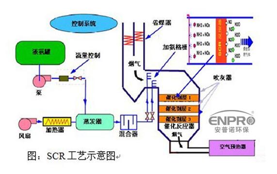 选择性催化还原烟气脱硝(SCR)技术,是往烟气中喷射氨基还原剂,在300~400℃温度和催化剂作用下,通过还原反应将NOx还原成无害的N2和H2O,脱硝效率能达到90%以上,是处于目前脱硝效率先进技术,最终排放能控制在50mg/m3以下。