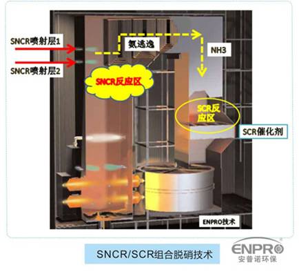 SNCR/SCR组合脱硝技术省去单纯SCR系统内危险性高、运输和使用均受限的液氨站和复杂的喷氨格栅等组件,增强SCR工艺的适用性,既保留了高效率,又降低了脱硝系统的投资和运行成本。